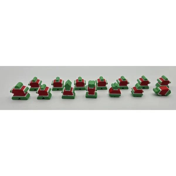 Que recevez-vous ? Un ensemble complet inspiré de Noël, compatible avec les meeples de la Carcassonne Big Box. Vous obtenez 5 ensembles différents de meeples, chacun comprenant :