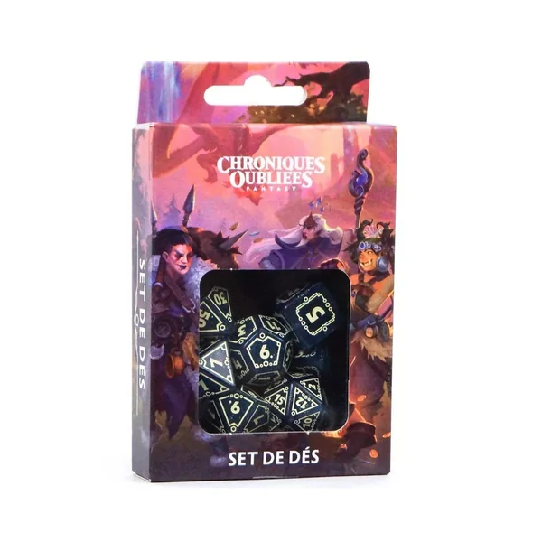 Entrez dans l’univers de Chroniques Oubliées avec ce set de 7 dés rôlistes conçu pour le jeu.