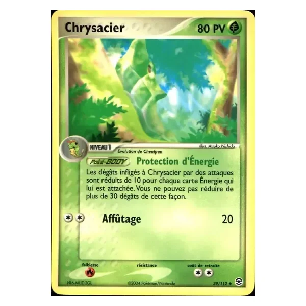 Découvrez Chrysacier (fl039), une carte Pokémon de l’extension Rouge Feu & Vert Feuille, provenant du bloc Ex. Idéale pour compléter votre collection, cette carte Peu Commune plaira autant aux collectionneurs qu’aux joueurs.