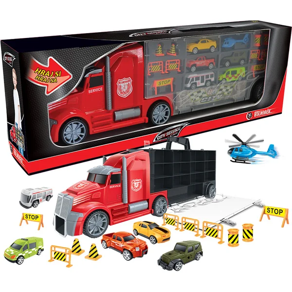 CITY SERVICE CAR – Camion avec voitures et hélicoptère 55 cm