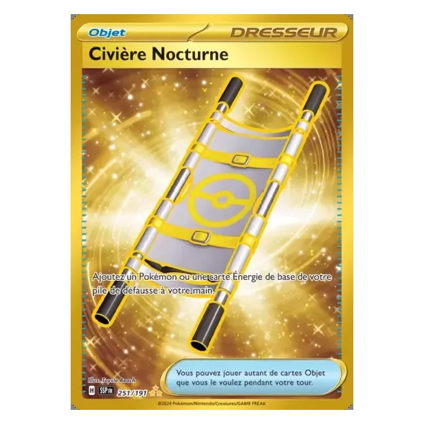 Découvrez Civière Nocturne (ssp251), une carte Pokémon de l’extension Étincelles Déferlantes, provenant du bloc Écarlate & Violet. Idéale pour compléter votre collection, cette carte Secret Rare plaira autant aux collectionneurs qu’aux joueurs.