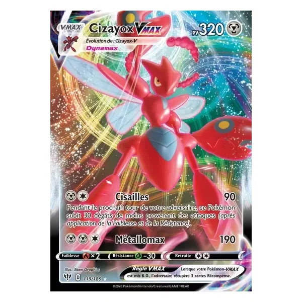 Découvrez Cizayox (daa119), une carte Pokémon de l’extension Ténèbres Embrasées, provenant du bloc Épée & Bouclier. Idéale pour compléter votre collection, cette carte Ultra Rare plaira autant aux collectionneurs qu’aux joueurs.
