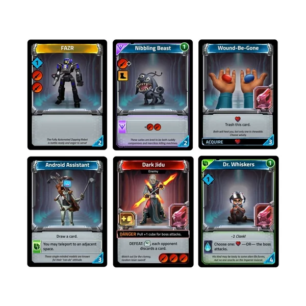 En cours de route, vous recruterez des alliés et prendrez un butin supplémentaire. Mais un faux pas et un Clank! attire l’attention de Lord Eradikus. Pirater son module de commande et voler ses artefacts augmente sa rage. Vous feriez mieux d’espérer que vos amis sont plus bruyants que vous si vous voulez atteindre une nacelle de sauvetage et en sortir vivant …