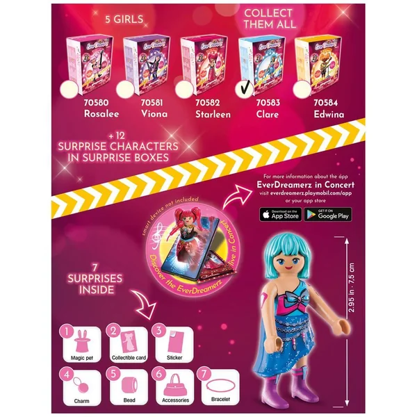 Brillante et ingénieuse, Clare connait la musique sur le bout des doigts. Son intelligence et son esprit logique lui permettent de trouver une solution pour chaque situation compliquée. Découvre le monde musical d’EverDreamerz ! Contient un personnage, un piano, un bracelet, des perles, une carte à collectionner, autocollants, et plusieurs accessoires.