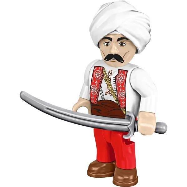 Le set comprend une entrée de temple finement détaillée avec des reliefs égyptiens typiques, servant de toile de fond époustouflante pour des scènes d’action. L’emballage contient trois figurines: le Napoléon Bonaparte lui-même sur son cheval blanc, un soldat français en uniforme d’époque et un guide local. L’ensemble est complété par des éléments fonctionnels et des accessoires authentiques, tels que des armes, des drapeaux et des palmiers. Tous les détails graphiques sont appliqués sur les briques à l’aide d’une impression de haute qualité, résistante à l’usure et aux rayons du soleil, garantissant que le modèle conserve son apparence premium même après des années de jeu.