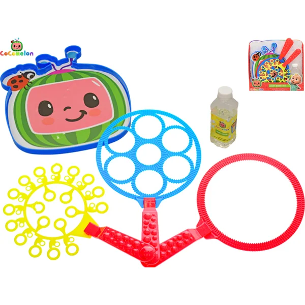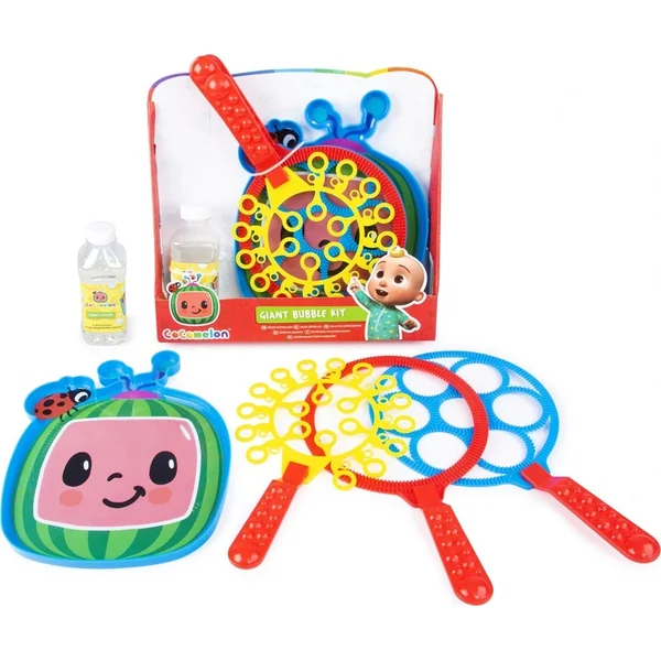 COCOMELON ensemble pour faire de grandes bulles de savon.