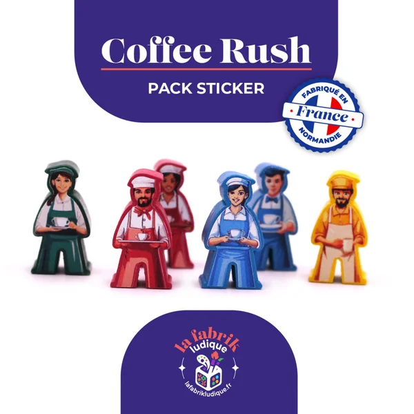 Ajoutez une dose de style et de clarté à vos parties de Coffee Rush avec notre pack de stickers conçu pour sublimer vos meeples de jeu ! Parfaits pour personnaliser les pions Baristas, ces autocollants apportent une touche visuelle savoureuse à chaque tour de jeu.