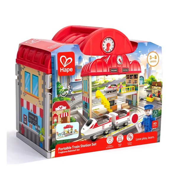 Jouez partout avec le coffret de gare portable Hape Railway : l’aventure vous accompagne ! Amusant et facile à transporter, ce coffret est un véritable atout pour un jeu imaginatif sans fin.