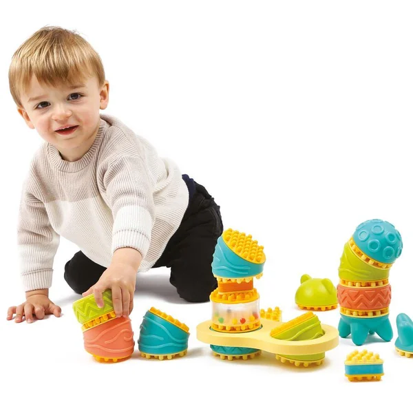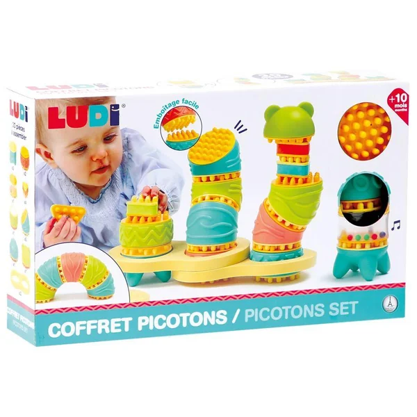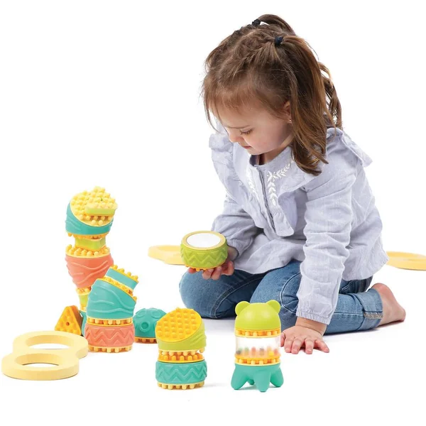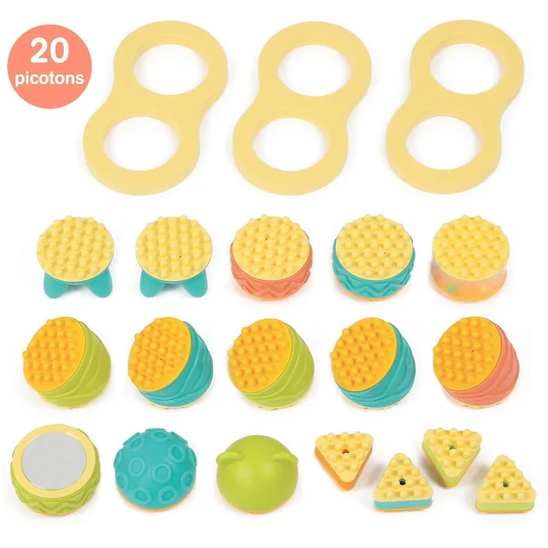Pensés pour le développement de la dextérité et de la motricité fine, les picotons sont faciles à prendre en main. Leurs textures souples, leurs couleurs vives et leurs reliefs géométriques stimulent l’intérêt des enfants.