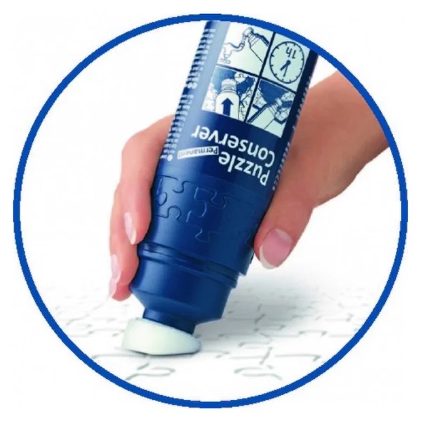 Grâce à son embout mousse, cette colle s’applique directement et facilement sur l’ensemble du puzzle assemblé.