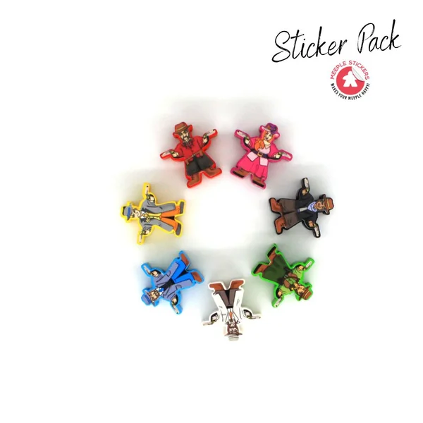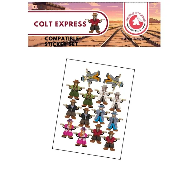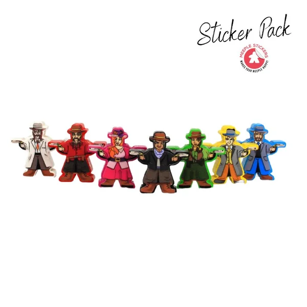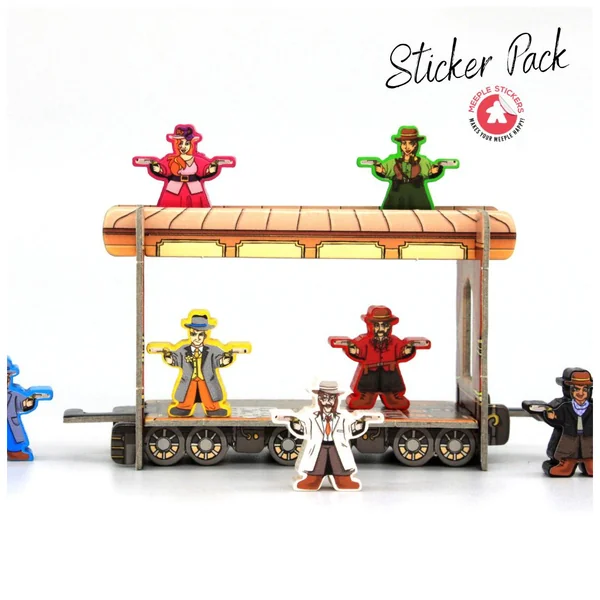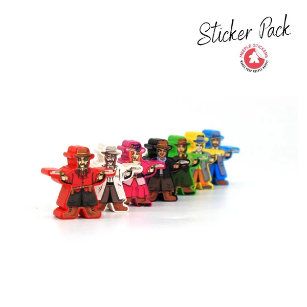 Votre dernière aventure vous emmène dans le Vieil Ouest où vous et vos collègues bandits vous affrontez pour dévaliser un train et devenir les hors-la-loi les plus riches. Et quel meilleur moyen de rendre cette expérience vraiment immersive que de faire en sorte que vos simples meeples aient leur propre personnalité ! Collez nos autocollants durables et hautement personnalisés et donnez une nouvelle vie à vos personnages !
