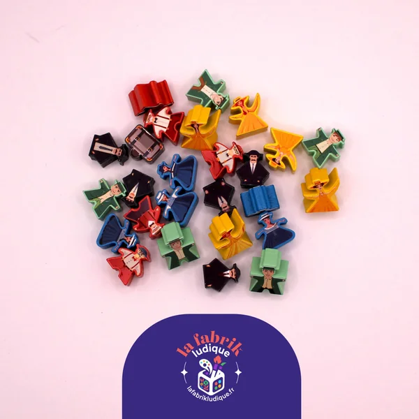 Les illustrations sont en partie réalisées à l’aide de l’IA générative, puis ajustées et retravaillées par «La Fabrik Ludique» afin d’obtenir un meilleur rendu sur les meeples.