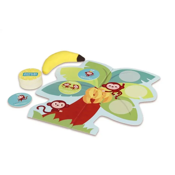 Comme des petits singes contient 40 cartes qui invitent les joueurs à faire des mouvements ensemble – des câlins aux high fives, en passant par des compétences simples comme l’équilibre, le saut et la marche.