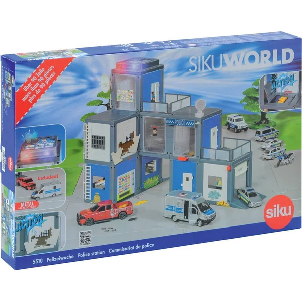 Construis ton poste de police à 3 étages grâce à la construction modulaire. Contient plus de 90 pièces dont 1 installation satellite, 1 table, 1 caméra de surveillance et 2 véhicules. Effet sonore et lumineux.