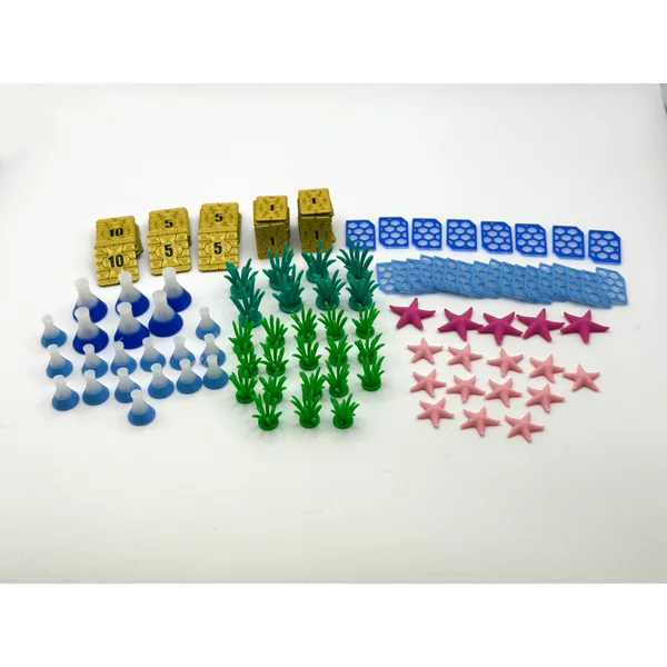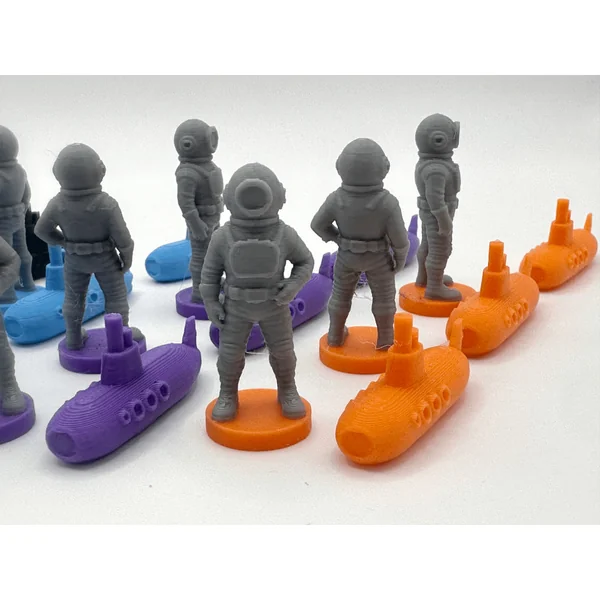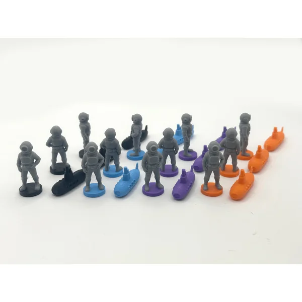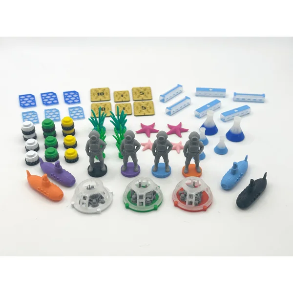 Chaque jeton, marqueur et tuile a été conçu pour améliorer le déroulement du jeu tout en donnant à votre réseau sous-marin un aspect thématique haut de gamme.