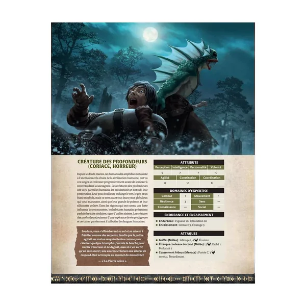 - Un système de jeu complet, comprenant le combat, les compétences, les talents, la sorcellerie et l’équipement nécessaire à toute aventure