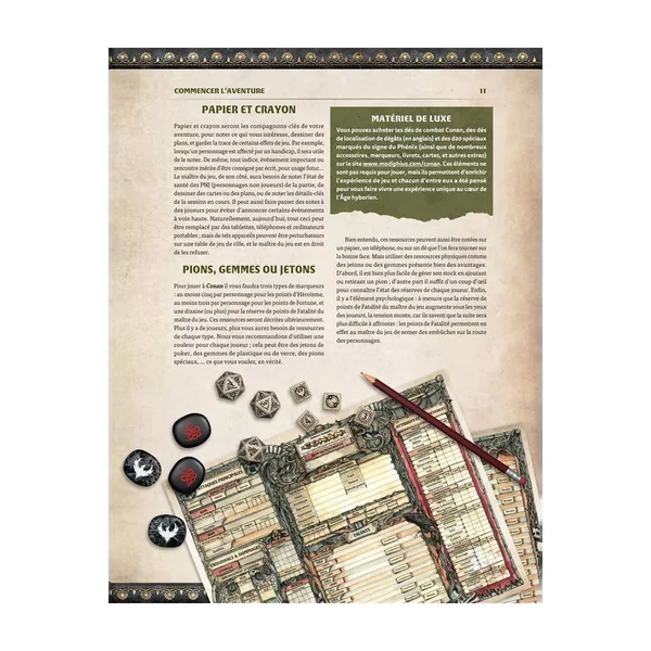 - Des instructions détaillées pour mener des scénarios et des campagnes dans l’Age Hyborien, permettant au maître du jeu de créer des aventures du plus pur style Howardien.