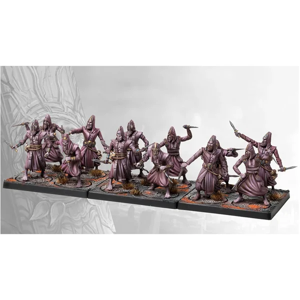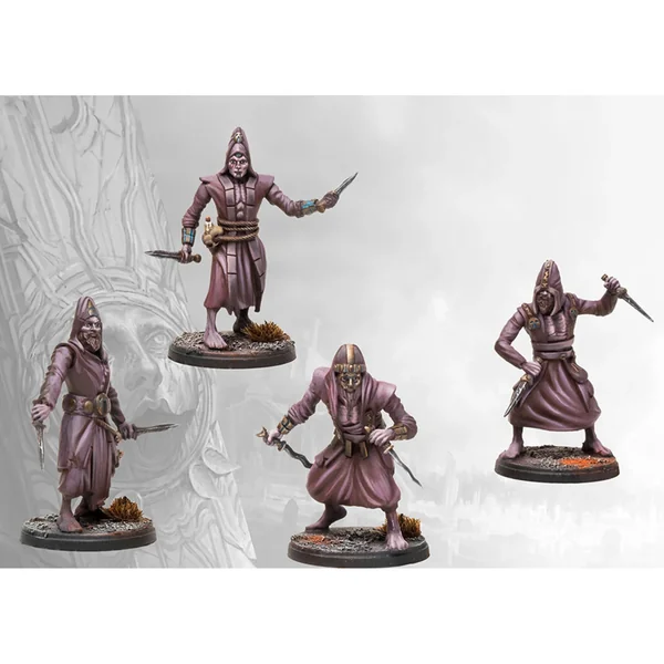 Tout comme le dieu lui-même, le culte d’Hazlia n’est pas tout à fait mort après la Chute. De petits monastères isolés qui vénéraient leur dieu et sa vision apocalyptique ont survécu grâce aux raids, au cannibalisme et à d’autres méthodes trop abjectes pour être décrites. Une fois découverts, les fanatiques parmi eux étaient sélectionnés et introduits dans les mystères du culte mortel d’Hazlia, promis à l’ascension dans ses rangs sans mort s’ils réussissaient à tuer leur cible par tous les moyens qu’ils pouvaient rassembler. Aujourd’hui, les Cultistes et les Hashashins opèrent indépendamment des Légions mortes-vivantes, semant le chaos et la mort devant leur avancée implacable.