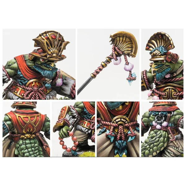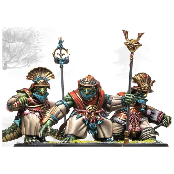 Disciplinés et très adaptables, les Kappa Bushi – Adaptabilité (Sui) – excellent dans les listes d’Armée Yoroni où un certain nombre de types de Cartes Idéales sont utilisés. En tant que troupes, ils offrent une bonne quantité d’attaques de haute qualité, ce qui en fait des troupes idéales pour les régiments mixtes. Cependant, en tant que Chefs de Régiment, ils peuvent être affectés par n’importe quel type de Carte Idéale, ce qui en fait un Régiment incroyablement polyvalent et personnalisable !