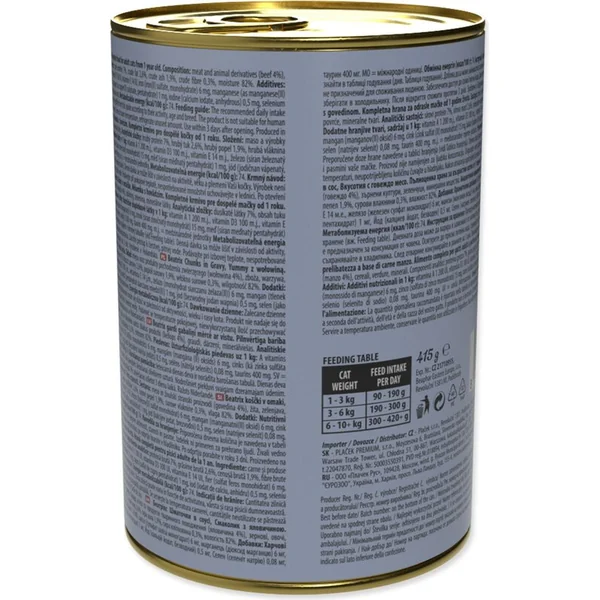 Alimentation complète pour les chats adultes à partir de 1 an. De délicieux morceaux de bœuf dans une sauce juteuse offrent un repas nutritif et appétissant chaque jour. La recette convient comme aliment autonome ou comme complément aux croquettes et assure un régime quotidien équilibré.