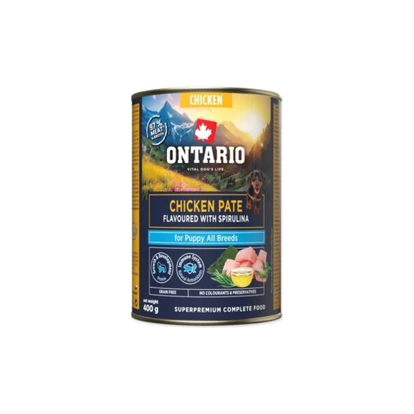 Conserve Ontario Puppy pâté de poulet à la spiruline 400g