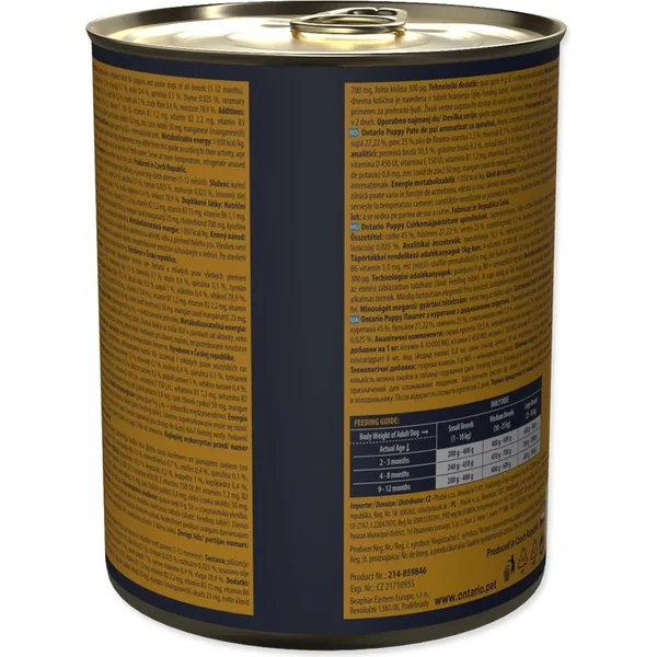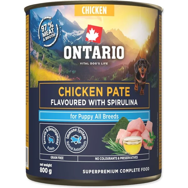 Conserve Ontario Puppy pâté de poulet à la spiruline 800g
