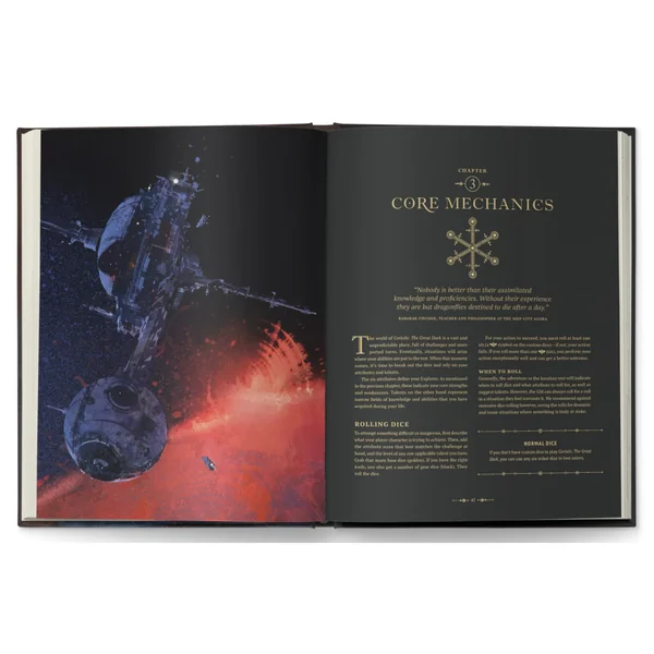 Inspiré par les expéditions du 19ème siècle, la plongée en haute mer et l’archéologie des aventures Pulp, Coriolis: The Great Dark est un jeu de rôle sur l’exploration et l’intrigue.