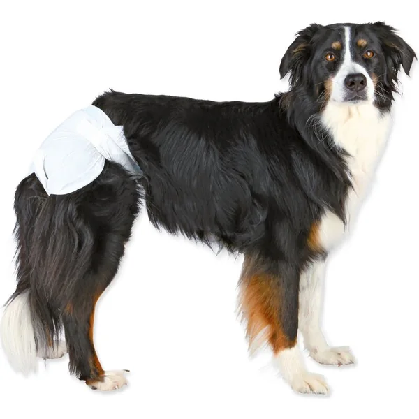 Des couches pour chiens, adaptées par exemple en cas d’incontinence, après une opération, ou lors de voyages. Elles ne conviennent qu’aux femelles.
