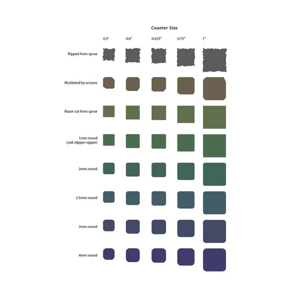 Cet outil est celui qui manque dans votre collection de wargamer vétéran. Grâce à lui, vous pouvez désormais arrondir les angles de vos tokens. Ce modèle permet une coupe dans un rayon 3mm.