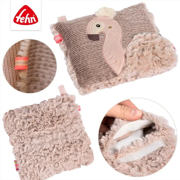 • coussin câlin avec sachet thermique amovible et application de flamant