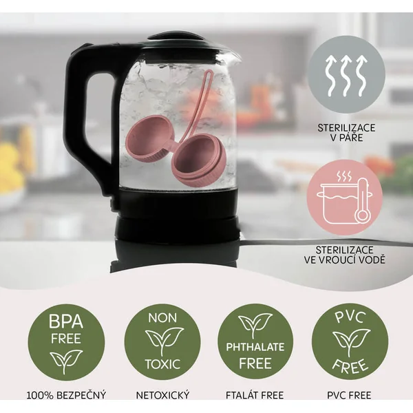 • Peut être bouilli/stérilisé dans de l’eau chaude