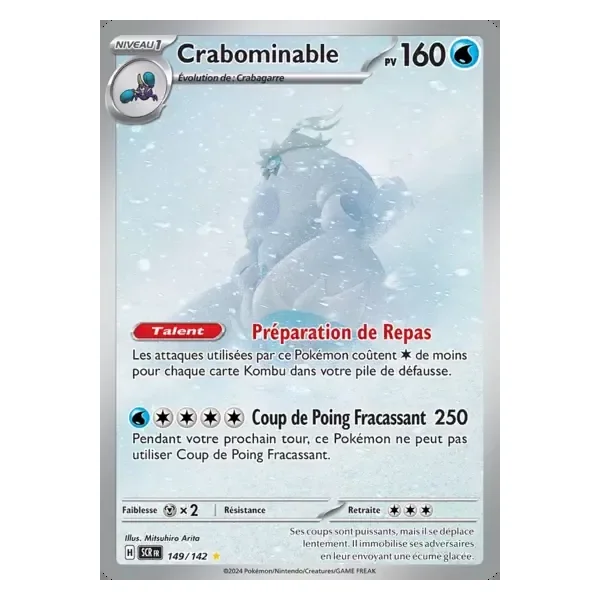 Découvrez Crabominable (scr149), une carte Pokémon de l’extension Couronne Stellaire, provenant du bloc Écarlate & Violet. Idéale pour compléter votre collection, cette carte Illustration Rare plaira autant aux collectionneurs qu’aux joueurs.