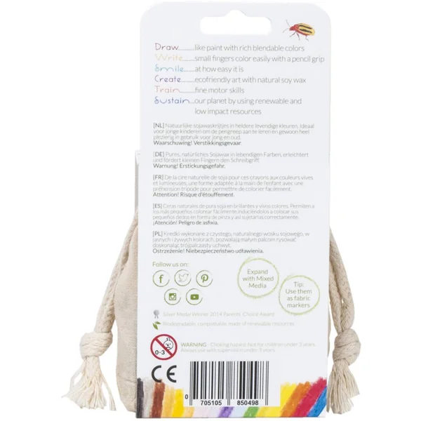 Crayons de cire ergonomique en cire naturelle specialement concus pour apprendre a tenir correctement son crayon. 16 couleurs.