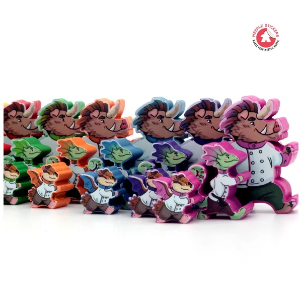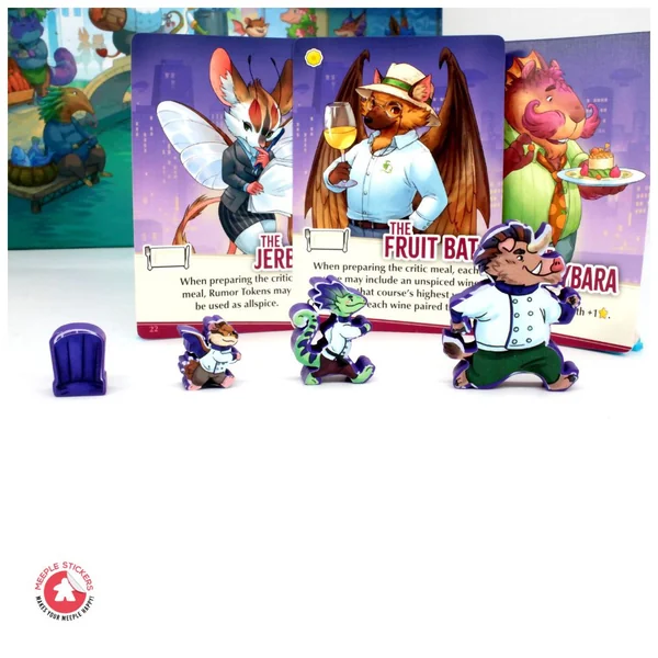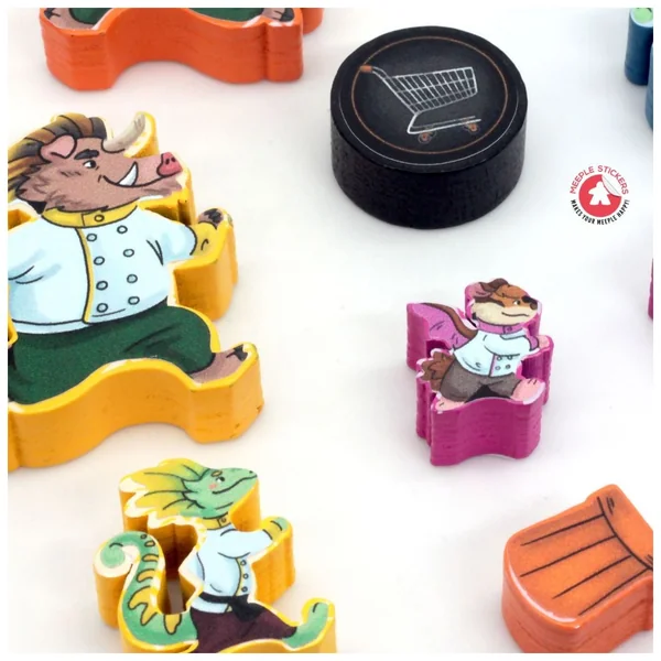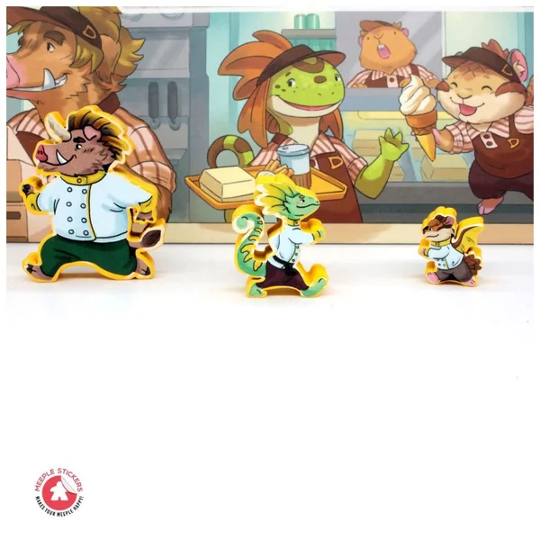 Nous vous proposons un ensemble d’autocollants incroyable pour le jeu de société populaire Critter Kitchen et son extension À la Carte. Dans ce jeu, vous prenez en charge une cuisine, relevez des défis et tentez d’impressionner les critiques. Pour une immersion encore plus grande dans le jeu de rôle, utilisez nos autocollants durables et de haute qualité pour donner à vos chefs leur propre personnalité.