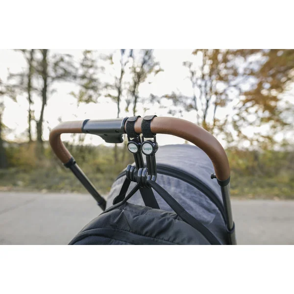 - La fixation se fait à l’aide d’un velcro solide, qui est suffisamment long et large pour s’enrouler autour du guidon de n’importe quelle poussette.