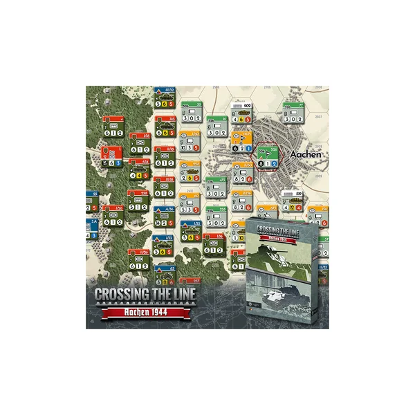 Crossing the Line – Aachen 1944 est une simulation de niveau opérationnel de la bataille d’Aix-la-Chapelle, qui s’est déroulée du 12 septembre au 21 octobre 1944. Le jeu est prévu pour deux joueurs mais convient également au jeu en solitaire et en équipe. Le jeu se joue de manière semi-interactive, car seule une division du joueur actif est activée pour mener des actions en même temps et le joueur inactif peut parfois faire réagir une de ses divisions à des menaces spécifiques et interrompre les actions de l’ennemi.