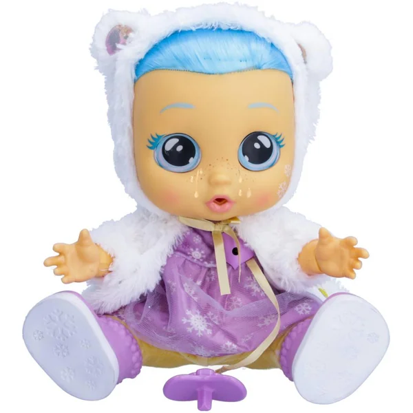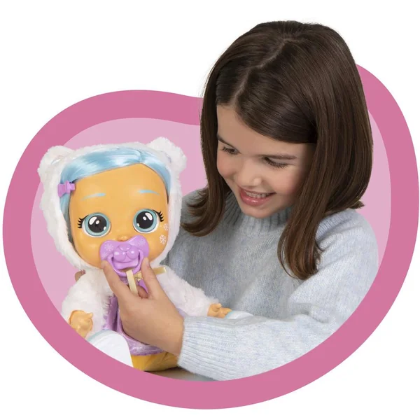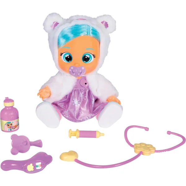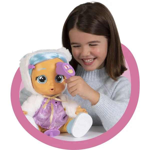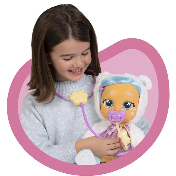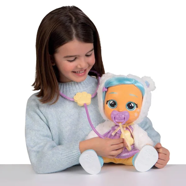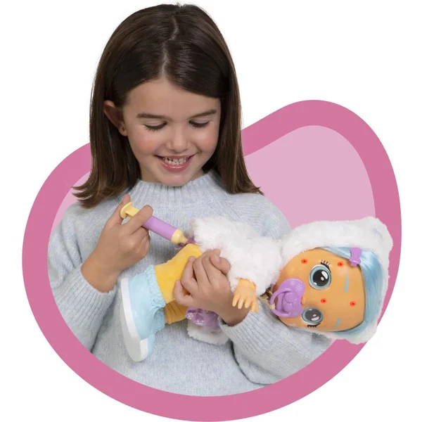Cry Babies Dressy Kristal est malade… Soigne-la et prends soin d’elle à l’aide de ses accessoires interactifs. Elle sanglote et pleure aussi de vraies larmes lorsqu’on lui enlève sa tétine. En plus, elle a de vrais cheveux à coiffer, des yeux effet cristal et un jolie tenue avec des chaussures amovibles. 25 sons réalistes de bébé. Inclus : 1 tenue complète et 7 accessoires.