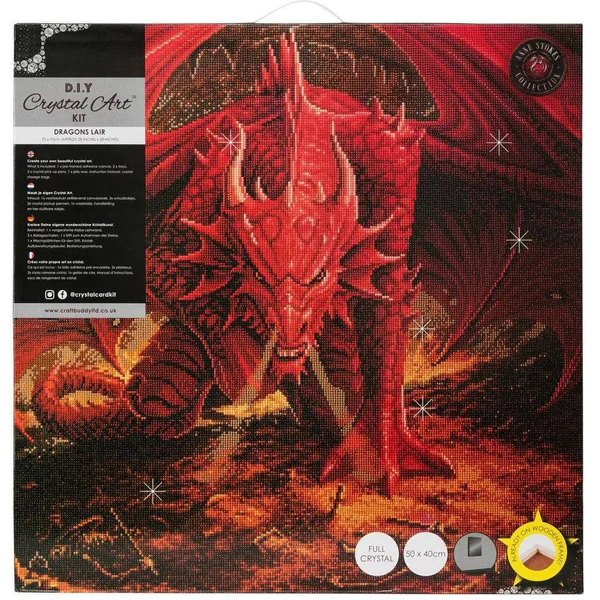 Illustration de l’artiste Anne Stokes. Contenu du kit tableau : 1 tableau sur châssis bois 70 x 70 cm 2 stylets pour diamanter, de la cire, 2 plateaux de tri et des strass colorés.Un coffret créatif comprenant un tableau déjà monté sur châssis bois, à diamanter en toute sérénité ! Facile à réaliser, toute la surface est imprimée, seules les zones adhésives et numérotées sont à diamanter. Le tableau est déjà monté sur châssis bois. Grâce à ce support rigide, il est plus facile à réaliser. Une fois diamanté, il est prêt à être affiché ou à être encadré. DU NOUVEAU DANS LA BRODERIE DIAMANT ! Amusant, stimulant, brillant…! Le principe de la broderie diamant est simple et ludique : réaliser une carte scintillante ou un tableau pré-encadré sur lequel le modèle est numéroté. Chaque couleur de strass correspond à un numéro. Il suffit de coller les strass colorés sur le support adhésif. Une activité zen à tester dont on ne peut très vite plus se passer ! Tout le matériel nécessaire est inclus dans les kits !