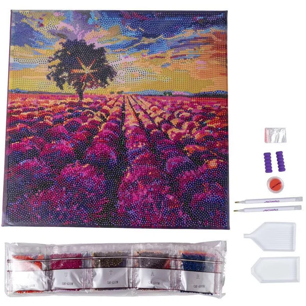 Tableau à diamanter! Contenu du kit tableau : 1 tableau sur châssis bois 30 x 30 cm , 2 stylets pour diamanter, de la cire, 2 plateaux de tri et des strass colorés.Un coffret créatif comprenant un tableau déjà monté sur châssis bois, à diamanter en toute sérénité ! Facile à réaliser, toute la surface est imprimée, seules les zones adhésives et numérotées sont à diamanter. Le tableau est déjà monté sur châssis bois. Grâce à ce support rigide, il est plus facile à réaliser. Une fois diamanté, il est prêt à être affiché ou à être encadré. DU NOUVEAU DANS LA BRODERIE DIAMANT ! Amusant, stimulant, brillant…! Le principe de la broderie diamant est simple et ludique : réaliser une carte scintillante ou un tableau pré-encadré sur lequel le modèle est numéroté. Chaque couleur de strass correspond à un numéro. Il suffit de coller les strass colorés sur le support adhésif. Une activité zen à tester dont on ne peut très vite plus se passer ! Tout le matériel nécessaire est inclus dans les kits !