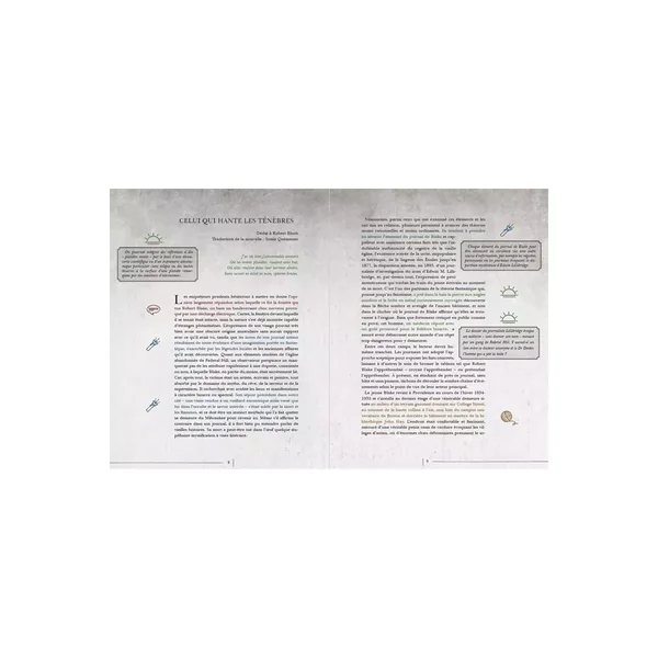 - Celui qui hante les ténèbres est la traduction de la nouvelle The Haunter of the Dark annotée par l’auteur de Cthulhu Hack, Paul Baldowski, pour une utilisation en jeu de rôle.