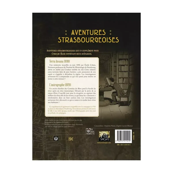 Ce supplément pour Cthulhu Hack contient deux scénarios. Il est également compatible avec la campagne La Ville en Jaune se déroulant à Strasbourg.