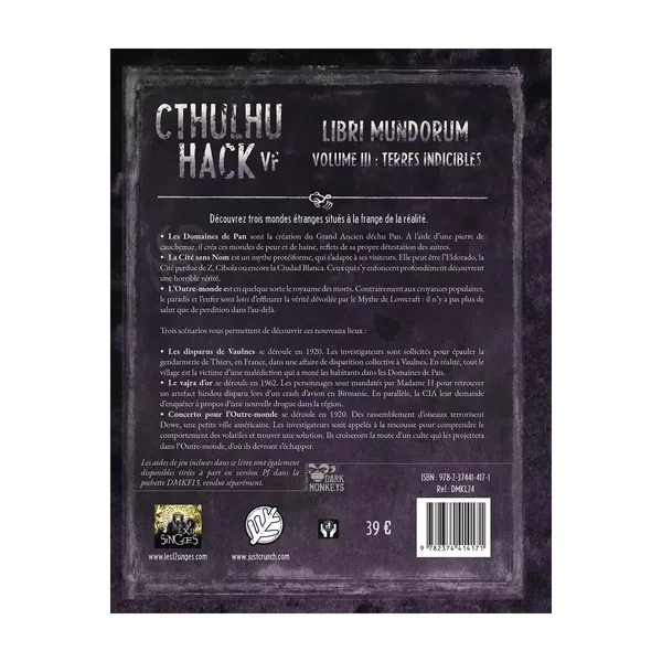 Cthulhu Hack : Libri Mundorum – Terres indicibles est un supplément pour le jeu de rôle Cthulhu Hack, édité par Les XII Singes utilisant le système Black Hack.