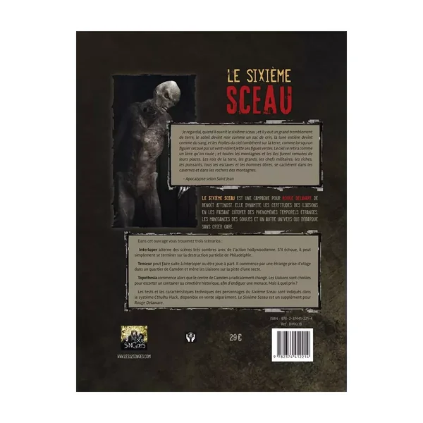 Les tests et les caractéristiques techniques des personnages du Sixième Sceau sont indiqués dans le système Cthulhu Hack, disponible en vente séparément. Le Sixième Sceau est un supplément pour Rouge Delaware.