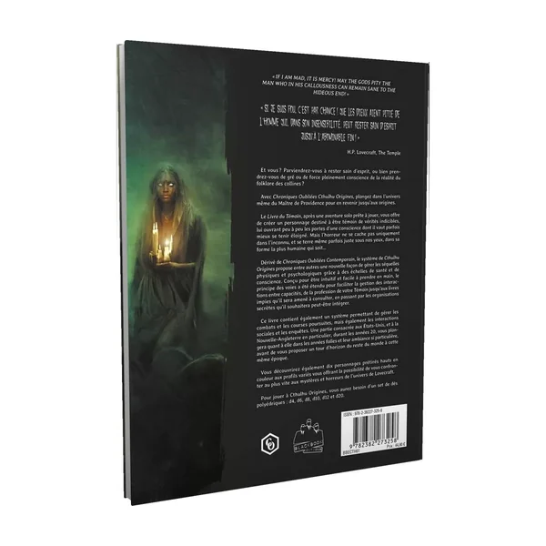 Le Livre du Témoin, après une aventure solo prête à jouer, vous offre de créer un personnage destiné à être témoin de vérités indicibles, lui ouvrant peu à peu les portes d’une conscience dont il vaut parfois mieux se tenir éloigné. Mais l’horreur ne se cache pas uniquement dans l’inconnu, et se terre même parfois juste sous nos yeux, dans sa forme la plus humaine qui soit…