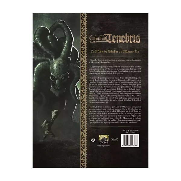 Enfin, le livre se termine par L’œil de l’Ojancanu, une grande aventure prévue pour plusieurs séances. Elle se déroule dans les paysages montagneux du nord de l’Hispanie sur fond d’une légende locale et du tout nouveau sanctuaire de Saint-Jacques-de-Compostelle. Où sont passés les pèlerins disparus ? Que cache le seigneur de Cabrales ? Que veulent les Maures qui se cachent dans les hauteurs ? Qui tue les bêtes dans les étables et pâturages ? Que signifient les signes gravés sur les roches des hauteurs ?