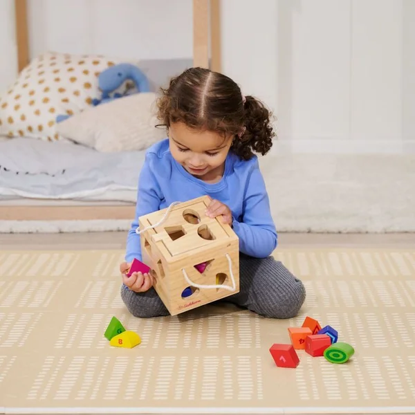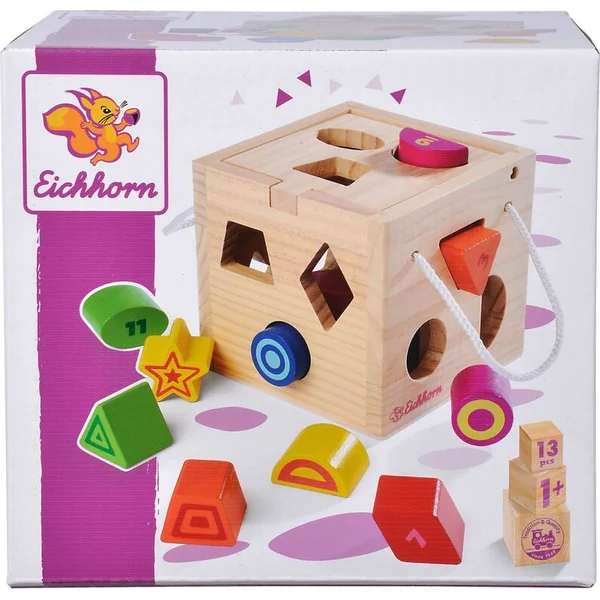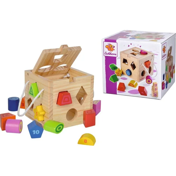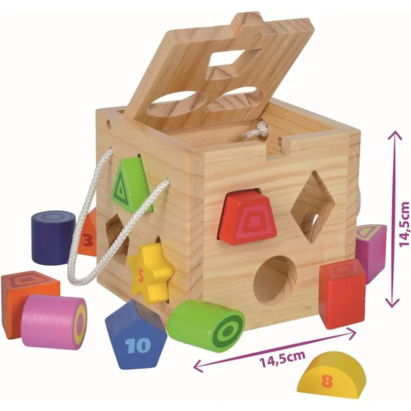 Jolie cube en bois – un jeu d’encastrement pour les plus petits qui attire par ses couleurs vives et enseigne aux enfants la motricité fine ainsi que la reconnaissance des formes et des couleurs.