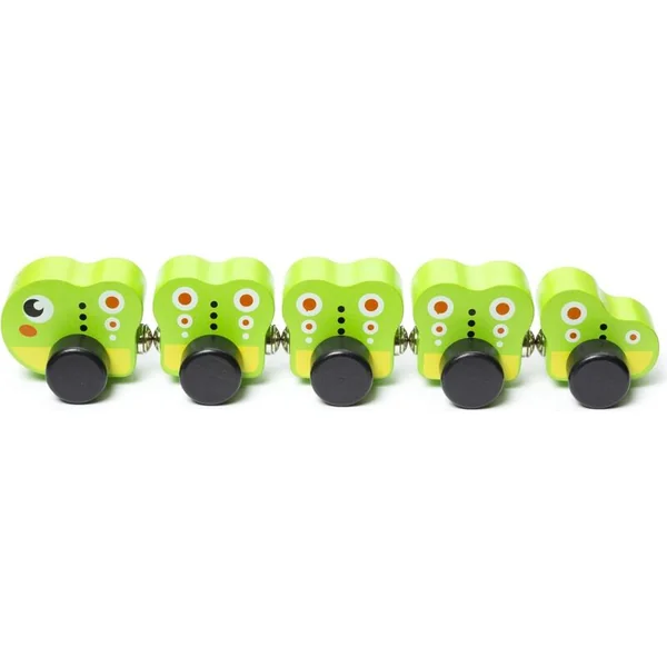La chenille est un jouet en bois de 5 pièces avec des aimants qui permettent de relier facilement les différentes parties.