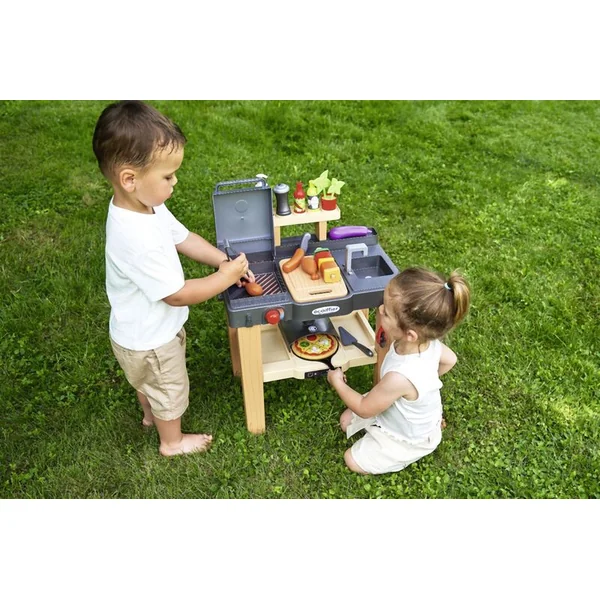 La cuisine de jardin d’été avec four à pizza d’Ecoiffier offre tout ce dont ont besoin les petits chefs.