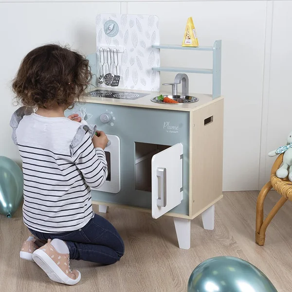 On s’affaire pour préparer le meilleur des repas à maman et papa ! Avec cette belle cuisine Plume, la confection de bons petits plats c’est un vrai plaisir pour les enfants à partir de 3 ans !