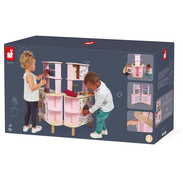 Des couleurs printanières, un style moderne et tendance et des possibilités de jeu multipliées grâce à son ouverture dans la longueur…cuisine idéale pour jouer à plusieurs ou pour devenir maître dans l’art culinaire !